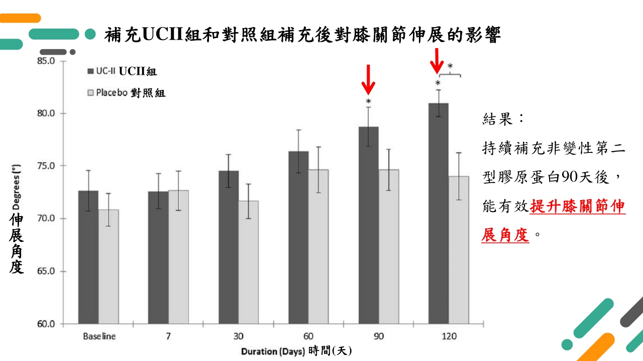 隨著年齡的增長,許多人都會有關節發炎、軟骨磨損、骨刺等相關問題產生,可能造成生活品質大幅下降,根據研究指出,近期發現一種蛋白質名為非變性第二型膠原蛋白,此膠原蛋白能夠有效提升膝關節伸展角度,這對於因關節不適而造成伸展角度受限的患者來說是可以補充的成分之一,此外若搭配葡萄糖胺的話,相信效果將會更為顯著喔!