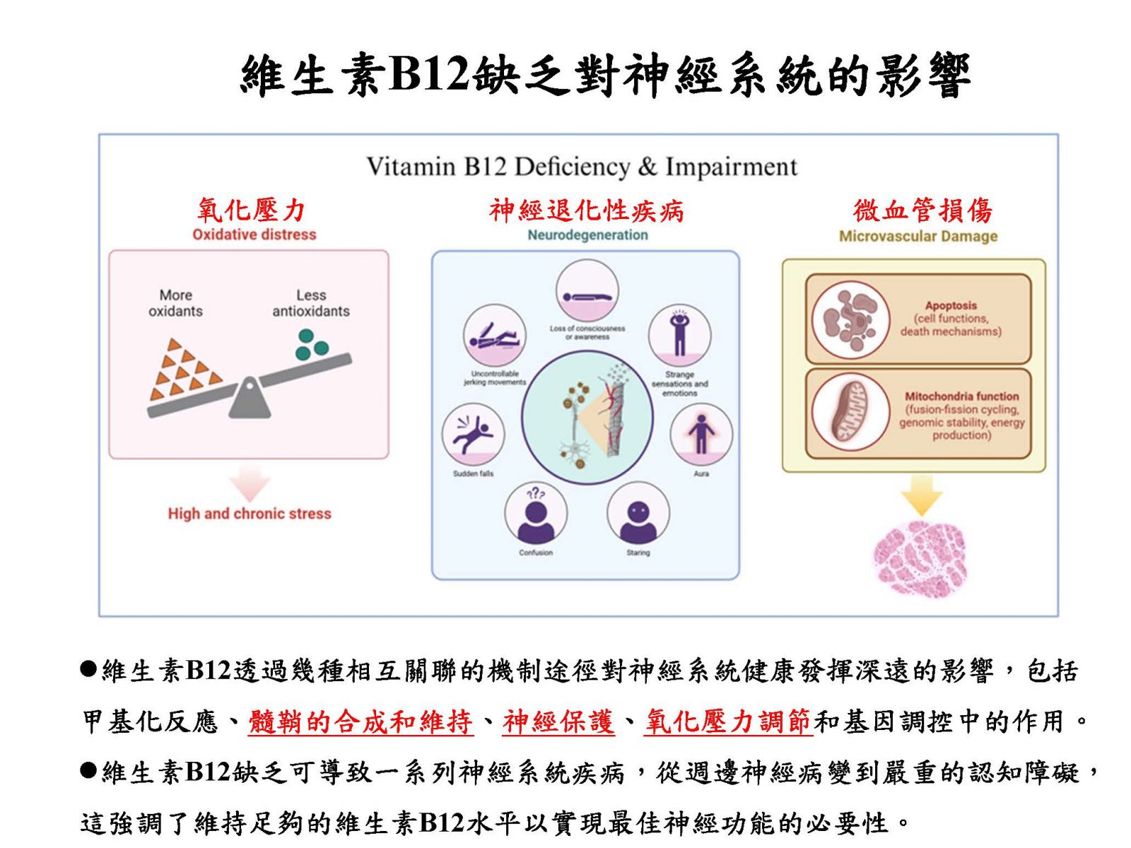 營養師提醒 ,容易缺乏 維生素 B12 的族群 可多利用膳食補充劑來補足維生素 B12, 早期介入可以避免不可回復的神經傷害。