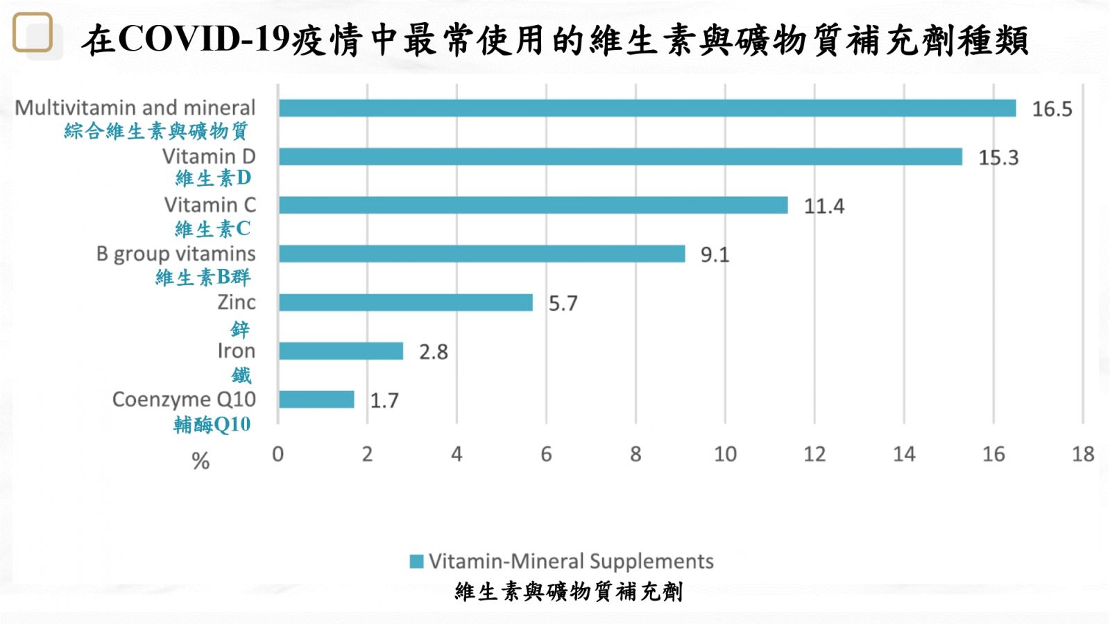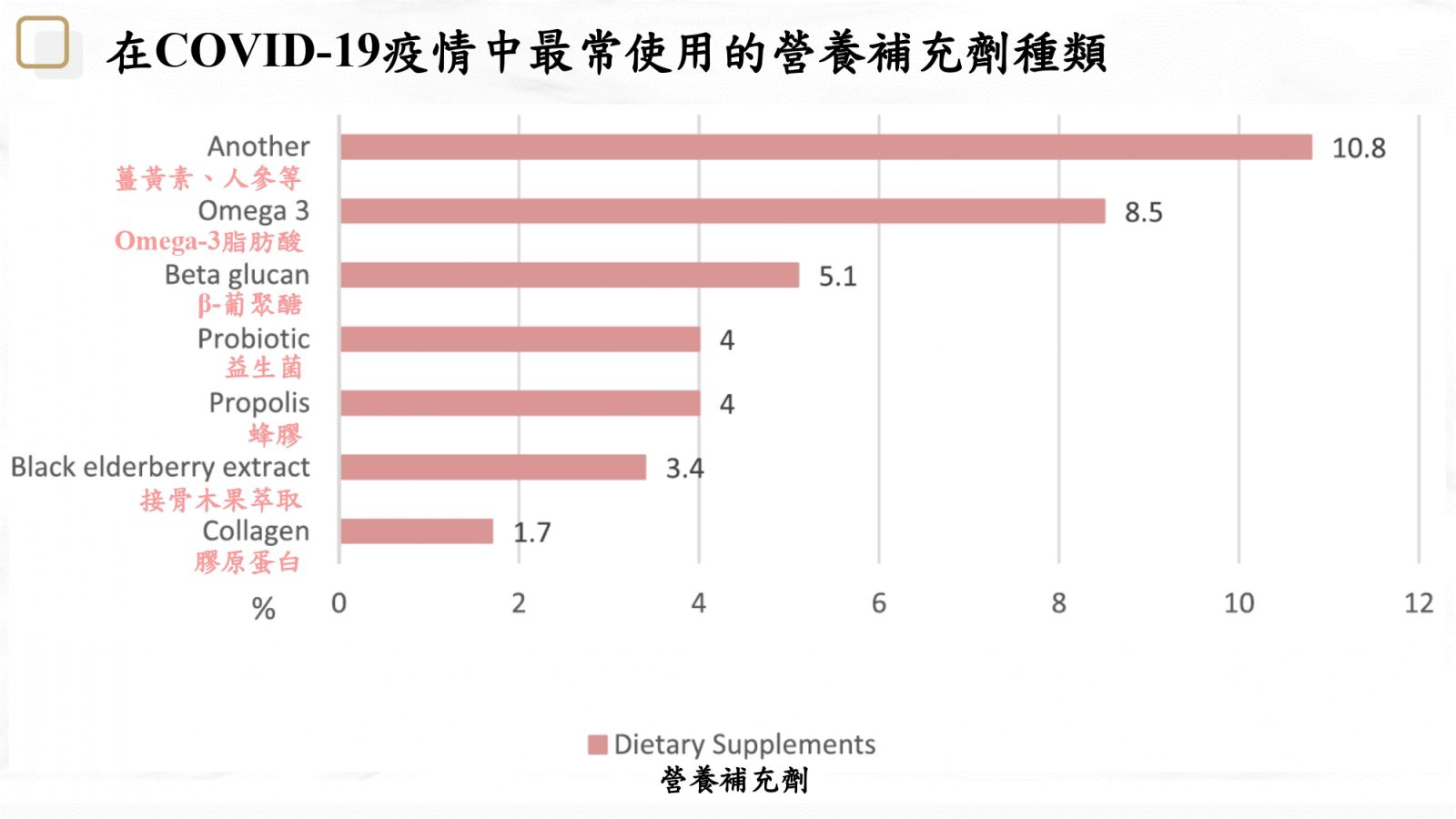 在新冠病毒的肆虐的同時,也衝擊著保健食品市場的銷售生態,這三年來的保健食品趨勢正朝向不同的功能需求傾斜著,根據今年最新研究統計,因為疫情而造成礦物質與維生素補充劑及營養補充劑的選擇排名大洗牌,礦物質與維生素補充劑的選擇前三名為綜合維生素與礦物質、維生素D與維生素C;營養補充劑前三名為薑黃及人參、Omega-3脂肪酸與β-葡聚醣,而這些成分其實都跟體內免疫力與基礎防護息息相關,因此在這免疫力當道的時代,平時不妨多補充這些成分來達到強化自身免疫力的效果喔!