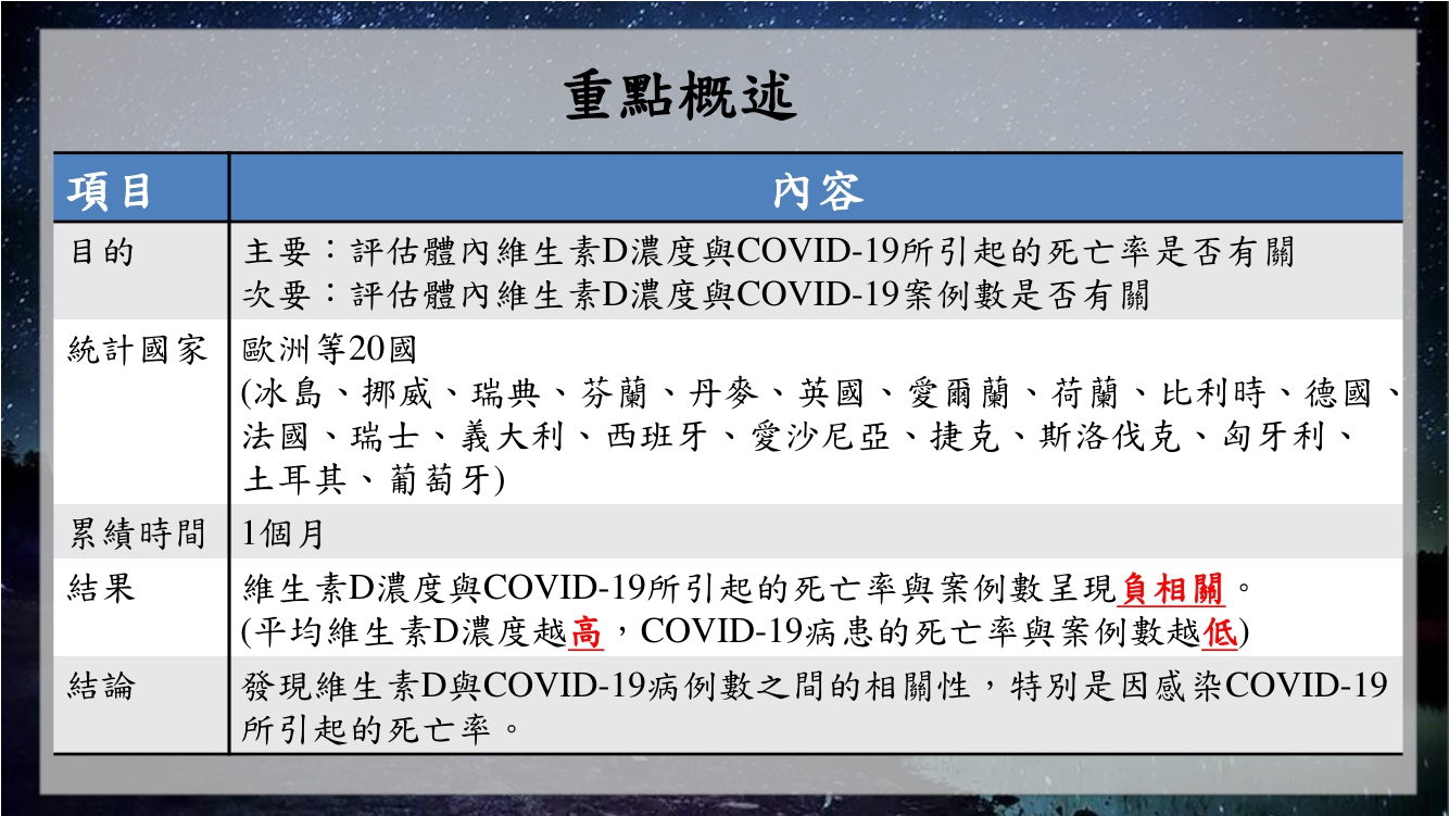 體內維生素D濃度與COVID-19有關嗎? 一篇蒐集歐洲20國的統計數據來告訴您!