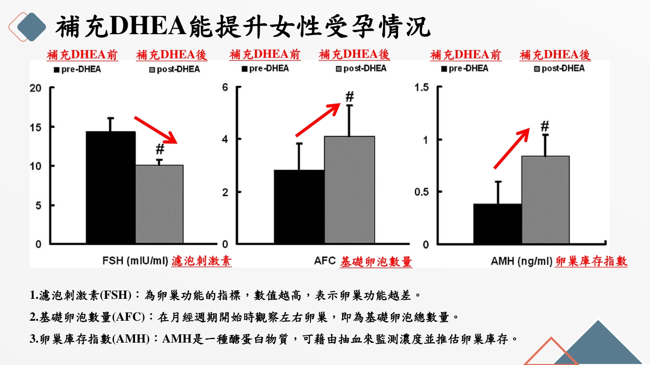 根據國內醫學機構指出,國內女性的凍卵比例逐年上升,而且凍卵的年齡層也逐年下降,可能與現代女性普遍重視職涯發展、追求自我價值、晚婚趨勢等因素有關,或是對於「保存生育力」的觀念接受度較高有關,而凍卵自然是越年輕品質越好,根據國內研究指出,補充山藥萃取所含有的DHEA(Dehydroepiandrosterone;脫氫異雄固酮)成分能夠降低濾泡刺激素(FSH)、提升基礎卵泡數量(AFC)及卵巢庫存指數(AMH),因此無論是有凍卵想法或是有想生育的女性,補充DHEA可說是受益良多!