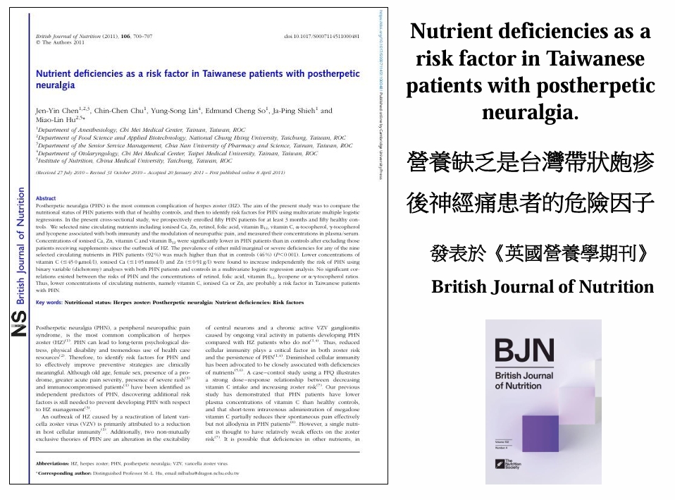 營養素缺乏是台灣帶狀皰疹後神經痛患者的危險因子