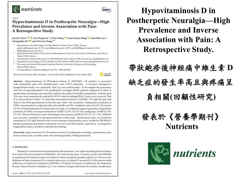 維生素D缺乏是帶狀皰疹後神經痛的危險因子