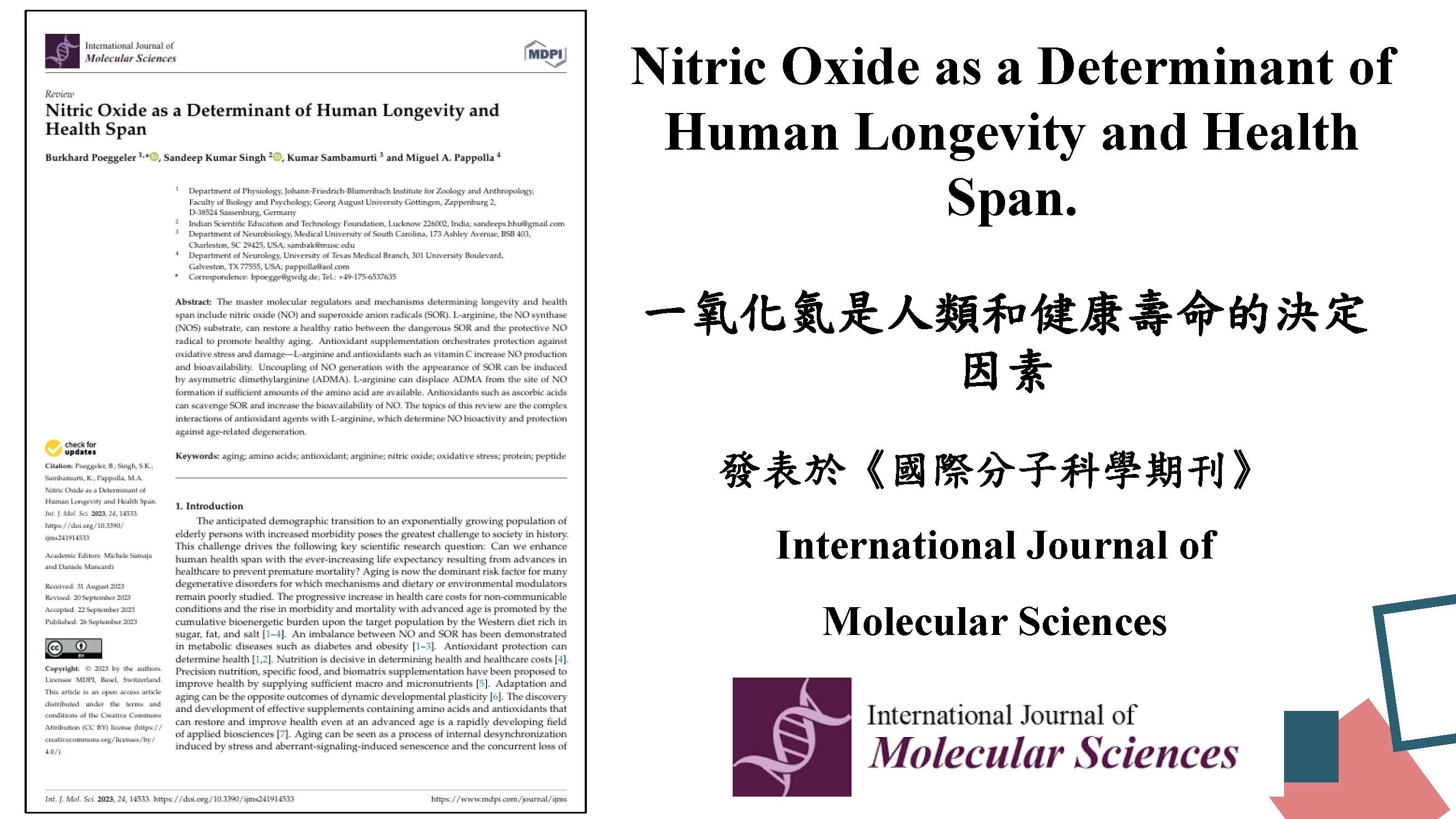 一氧化氮(NO)是決定健康與壽命的關鍵
