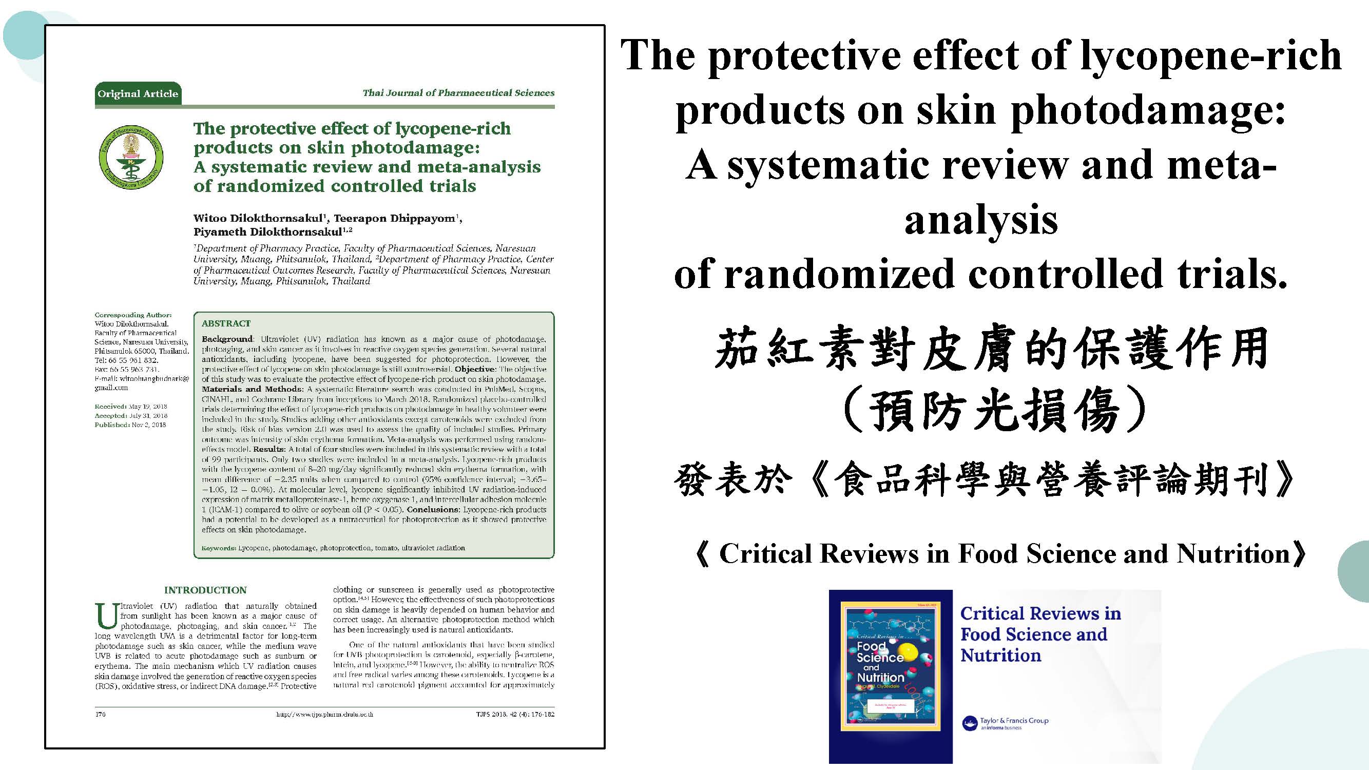 茄紅素(Lycopene)的抗氧化作用可以保護皮膚免受紫外線 ...