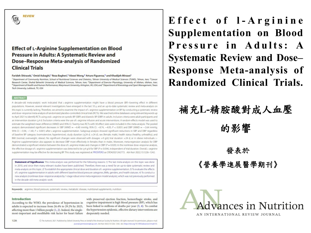 L-精胺酸提升 一氧化氮 (NO) 生物利用率,促進健康的血壓和 ...