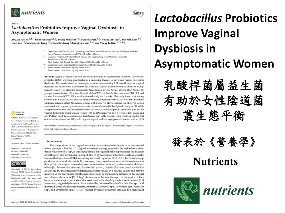 口服補充乳酸菌桿菌屬(Lactobacillus)益生菌有助於女 ...