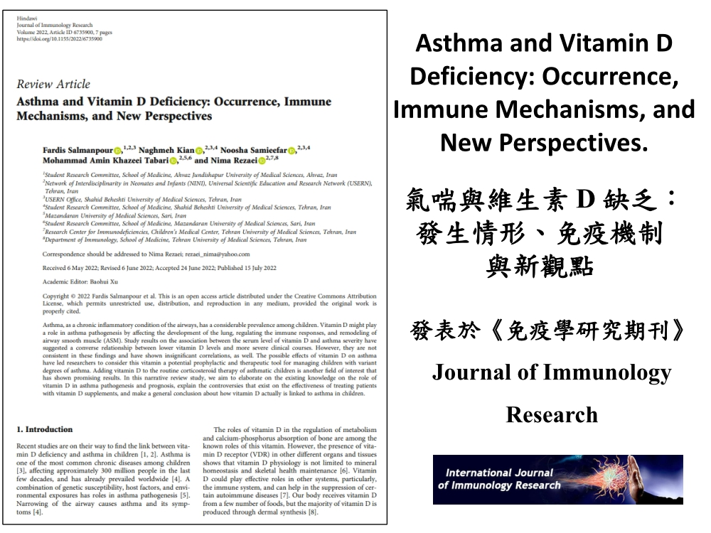 維生素D與氣喘和免疫健康間具有密不可分的關係