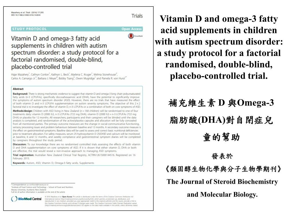 補充維生素D+DHA對自閉症兒童症狀有顯著的改善