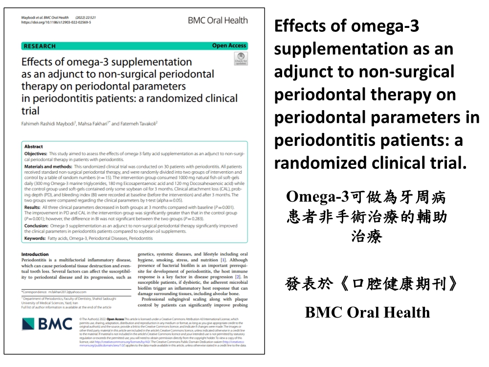 Omega-3可做為牙周病患者非手術治療的輔助治療