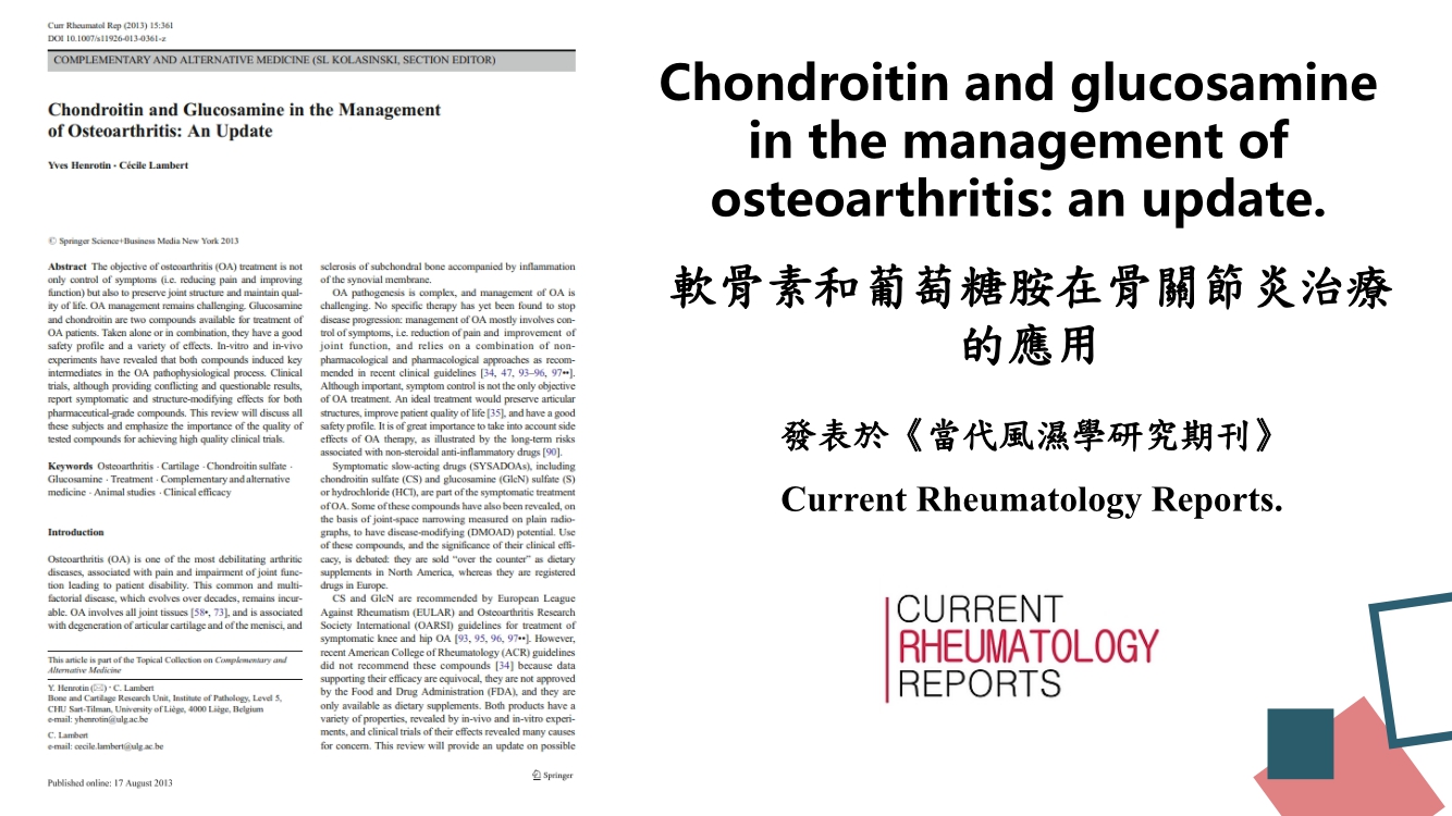 葡萄糖胺和軟骨素(軟骨的兩種結構成分)在治療退化性 ...