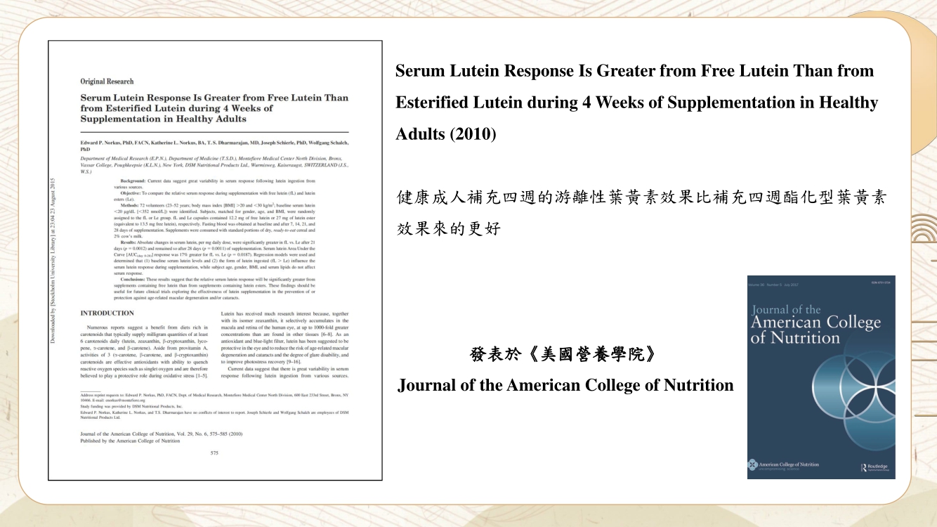 游離型葉黃素與脂化型葉黃素哪個吸收效果好? 美國研究證 ...