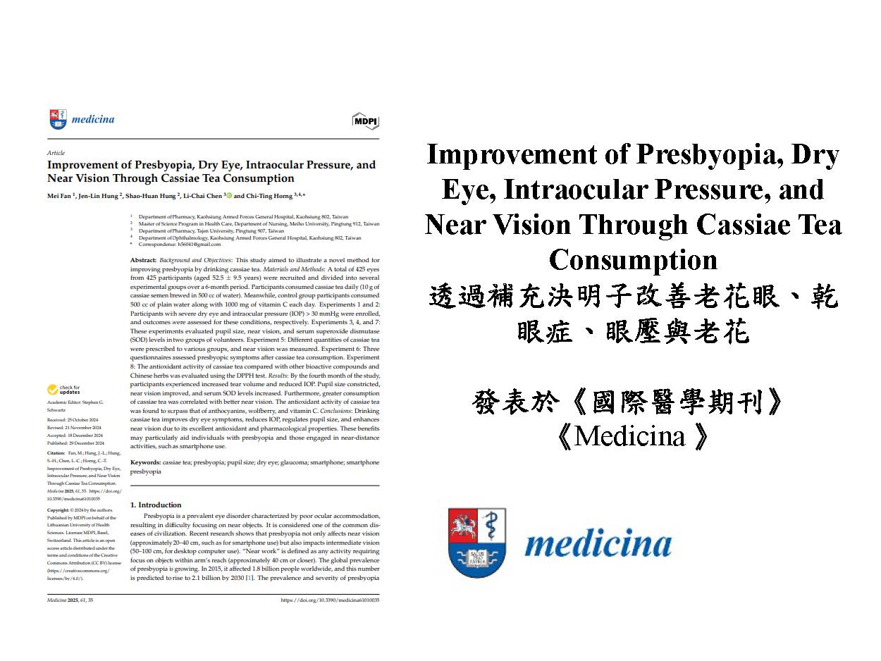 透過補充決明子改善老花眼、乾眼症、眼壓與老花